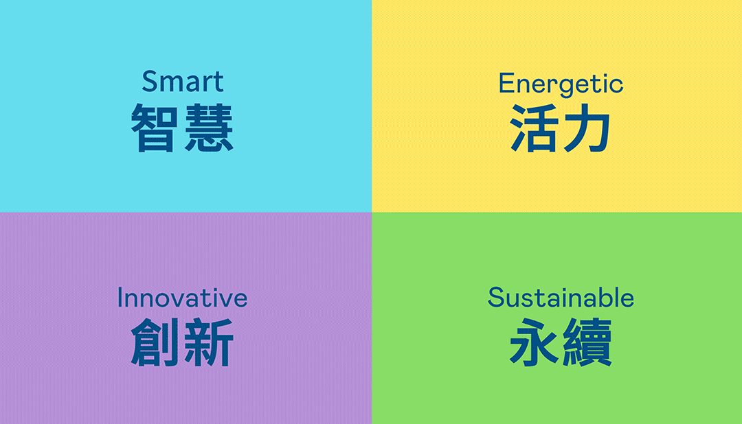 从稳重、信赖的尊龙蓝开创新色彩,注入象征智慧蓝、活力黄、创新紫、永续绿的品牌色及动态多变的几何图形,呼应不设限的「Possibilities」精神,代表多元的专业技术及领域,在碰撞中相互触动、融合、延伸,持续激荡出更多新的可能性。